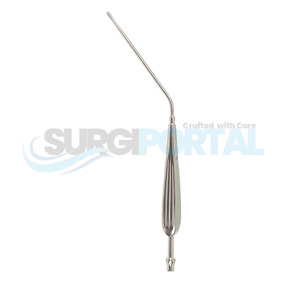 The 10 Anthony Suct Tube ang 2mm opnng is a finely crafted surgical tool designed for high-precision aspiration in confined or intricate anatomical areas. The 2mm tip is optimized for delicate procedures requiring minimal suction force, such as microsurgery, ENT, or neurosurgery. The angled shaft improves surgical access without compromising the line of sight, enabling the surgeon to maintain visibility and control. Constructed from premium stainless steel, this suction tube offers long-lasting performance and is fully sterilizable between uses. Its slender form factor ensures minimal disruption to surrounding tissue.