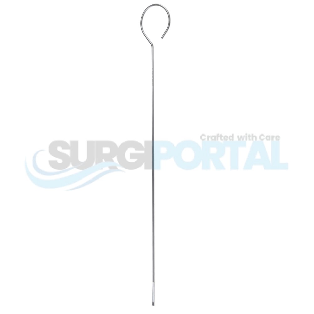 10 Single IUD Hook is a gynecological instrument designed to assist in the retrieval or manipulation of intrauterine devices. Its length and tip shape allow precise handling during procedures.