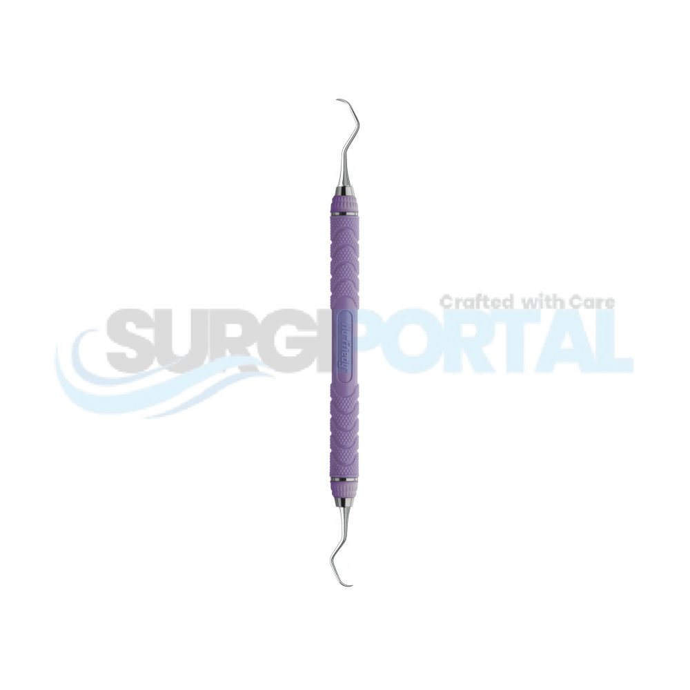 The 128 Nebraska Scaler DE is a double-ended precision scaler designed for supragingival calculus removal in anterior regions. Its slim blades and sharp tips ensure efficient interproximal access and effective scaling.