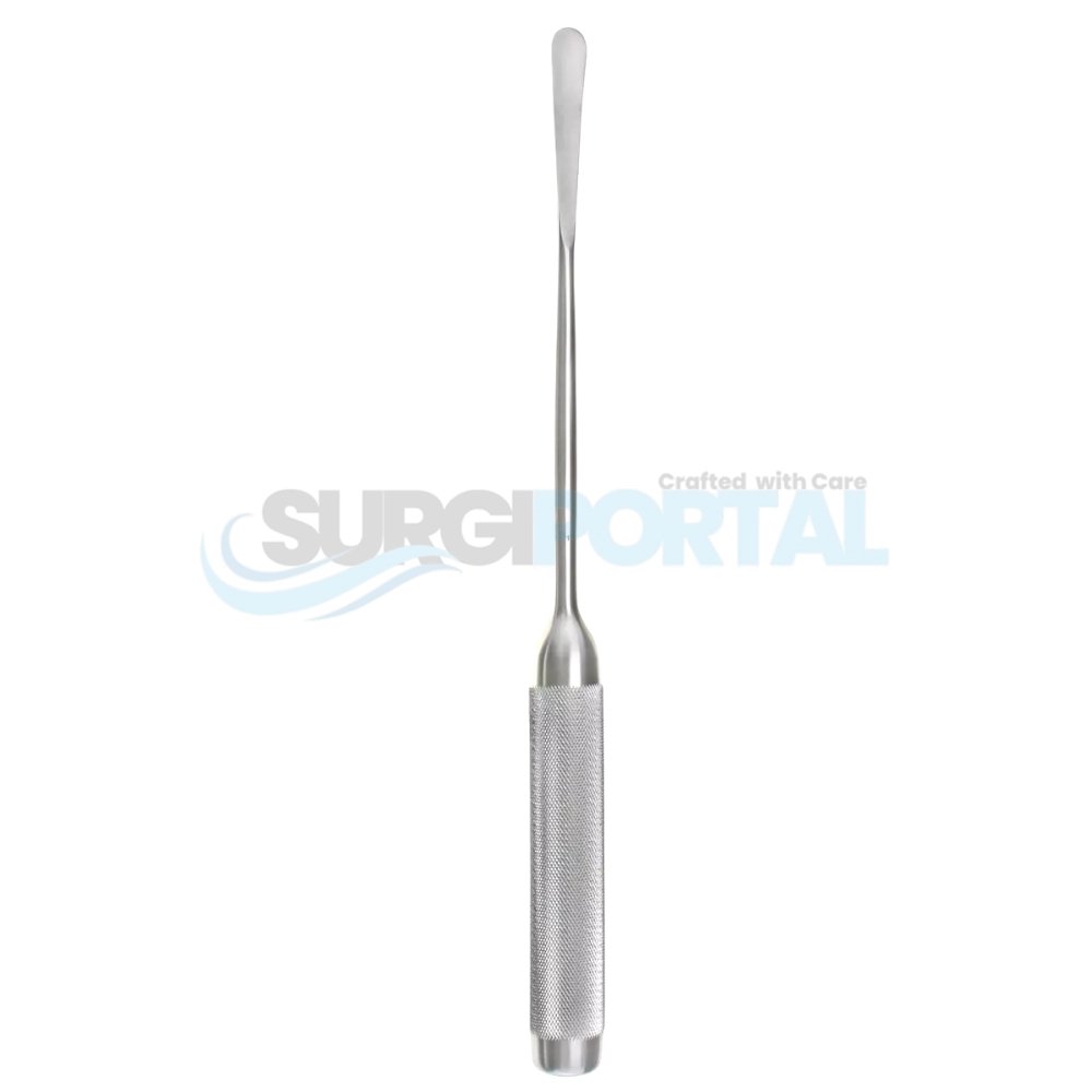 14″ Cobb Elevator – 1/2″ Wide is a robust instrument designed for lifting periosteum or soft tissues during large orthopedic and spinal operations. The slim yet strong 1/2″ blade enables precise separation of tissue layers while maintaining controlled depth. Its long shaft makes it ideal for deep surgical fields, especially in posterior spinal or pelvic access.