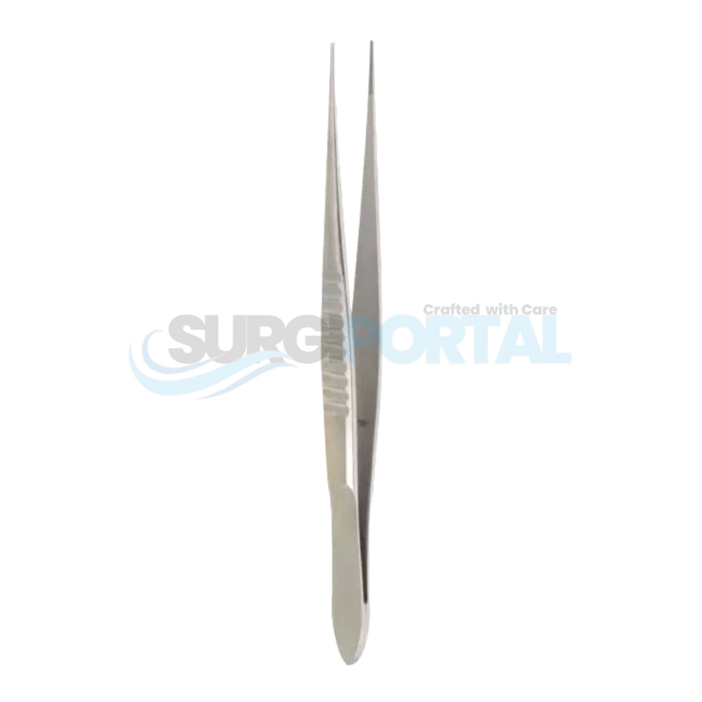 4 ⅜” Forceps, Extra Fine, Serrated Crafted for micro level precision, the 4 3 8  Extra Fine Serrated Forceps are ideal for grasping ultra delicate tissues or fine materials in intricate procedures. The fine serrations enhance grip without crushing tissue.