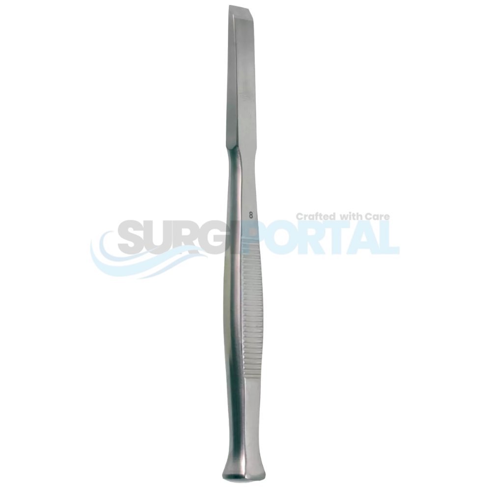 5 1/4″ Partsch Chisel – 8 mm The 5 1/4-inch Partsch Chisel with an 8 mm edge is intended for wider bone cuts while maintaining a compact form factor.