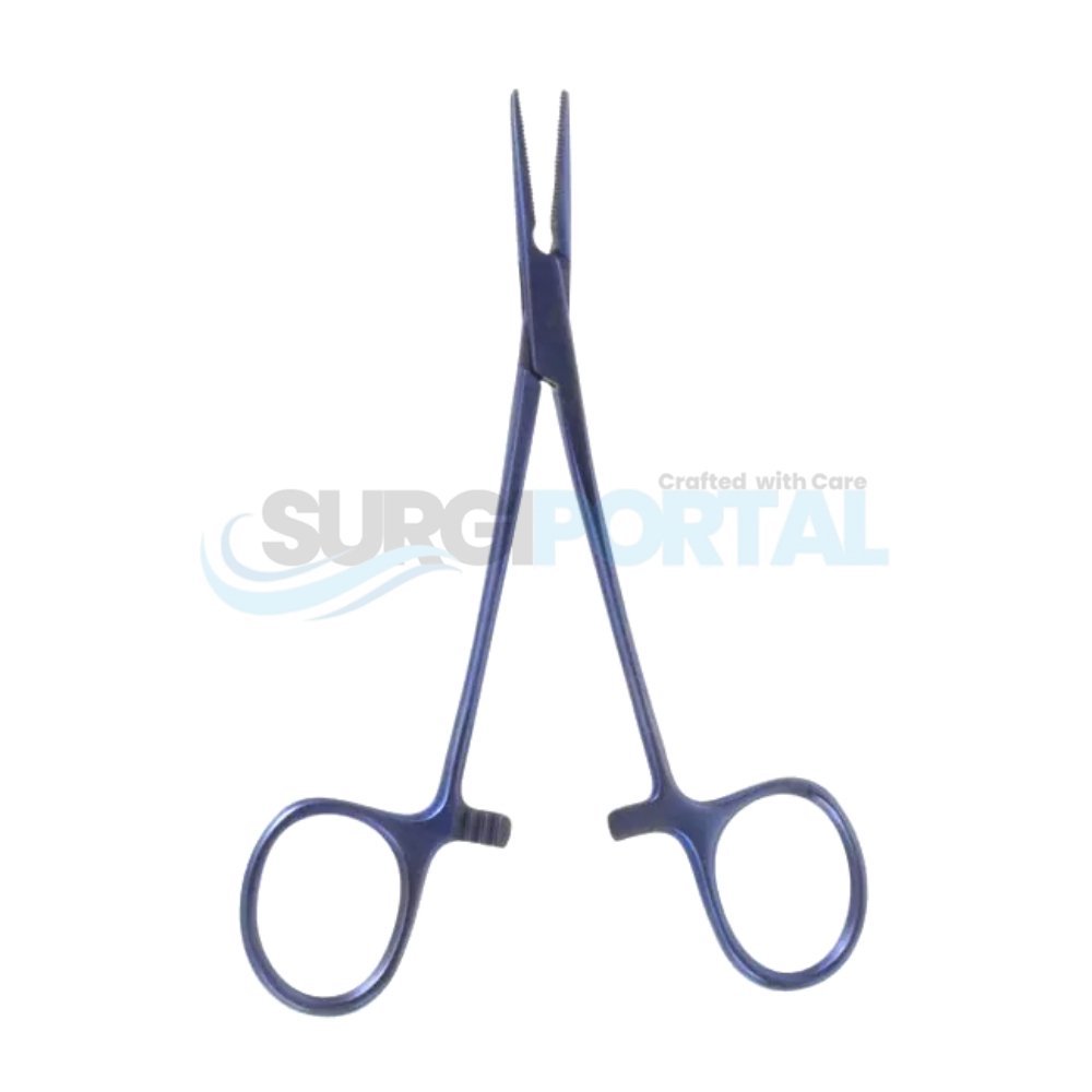 A curved, toothed titanium Halsted mosquito forceps designed for delicate vessel control with maximum precision in micro and general surgery.