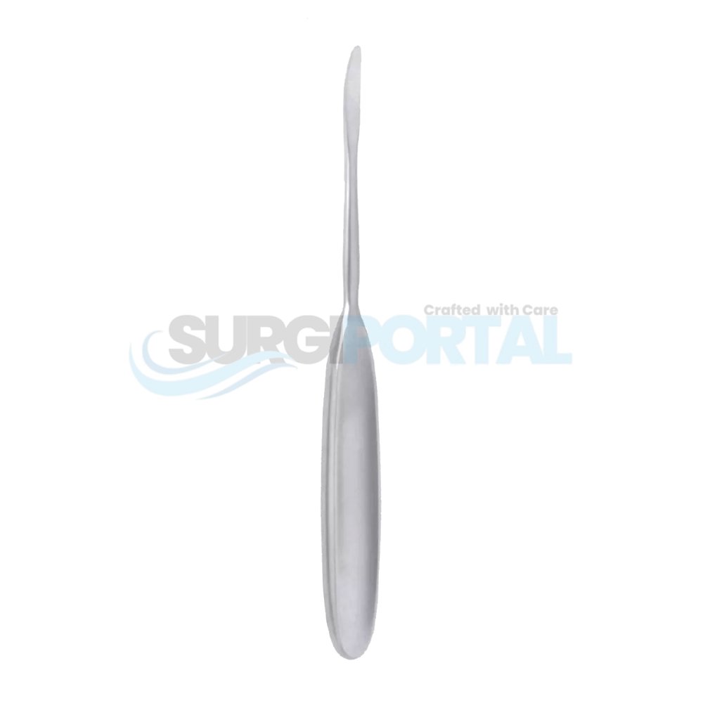 7 3/4″ Lane Periosteal Elevator – 10mm Blunt Lane Periosteal Elevator with a 10mm blunt tip provides a wide contact surface for elevating periosteum or soft tissue. Its slightly longer handle offers increased leverage, ideal for orthopedic, spinal, and reconstructive procedures.