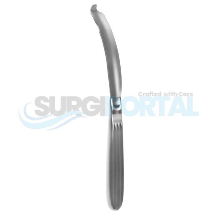 Its contoured shape provides excellent adaptation to the left mandibular anatomy, ensuring that the operative field remains unobstructed. The instrument is engineered to reduce intraoperative strain while protecting vital structures. It is constructed from durable, surgical-grade stainless steel and can be sterilized and reused multiple times without compromising quality or function.