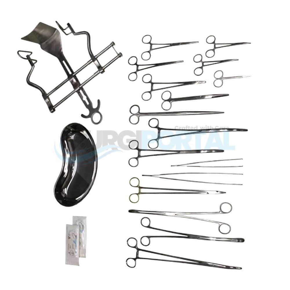 This Abdominal Vascular Surgery Instruments Set is a comprehensive solution for procedures involving the abdominal aorta, iliac arteries, and major visceral branches. It supports open vascular reconstructions, aneurysm repairs, and thrombectomies with precise and safe manipulation of critical vessels. Used by vascular and cardiothoracic surgeons worldwide, this set ensures optimal exposure, clamping, and suturing in complex vascular environments.
