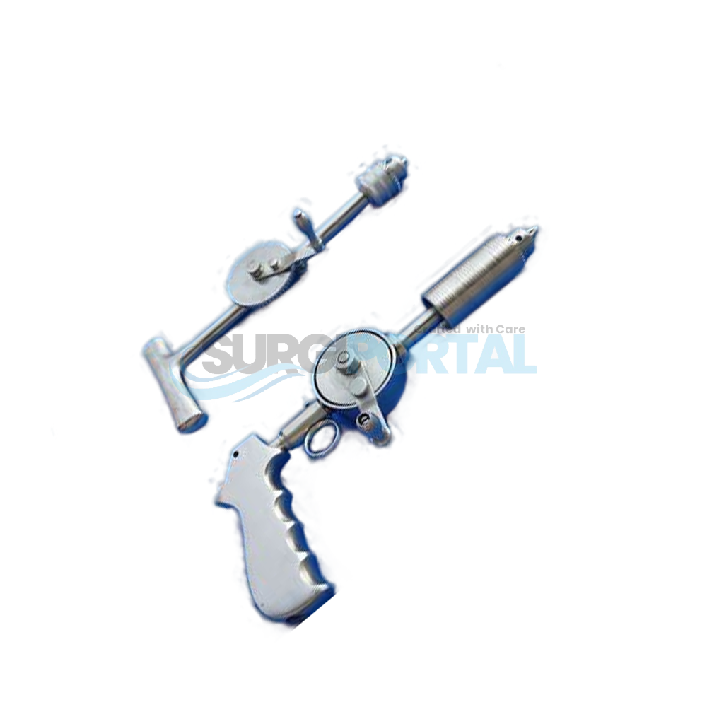 The Hudson Brace Bone Drill is a traditional manual crank-style drill used primarily in neurosurgery and orthopedic procedures. Its compact design allows for fine control in delicate surgeries.