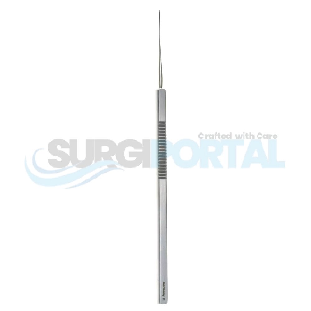 Bonn Micro Iris Hook – Round Handle is a precision-designed ophthalmic instrument used in delicate anterior segment eye surgeries, particularly for retracting and manipulating the iris with minimal trauma. The round handle provides a comfortable and ergonomic grip, allowing surgeons to maintain steady control throughout microsurgical procedures. Crafted from high-quality surgical stainless steel, this hook ensures excellent durability, corrosion resistance, and long-lasting performance. The fine tip design enables accurate and atraumatic handling of sensitive ocular tissues, making it a trusted tool in cataract, corneal, and anterior chamber surgeries. Surgeons value its balance of lightweight design and high stability, which minimizes hand fatigue during prolonged operations.