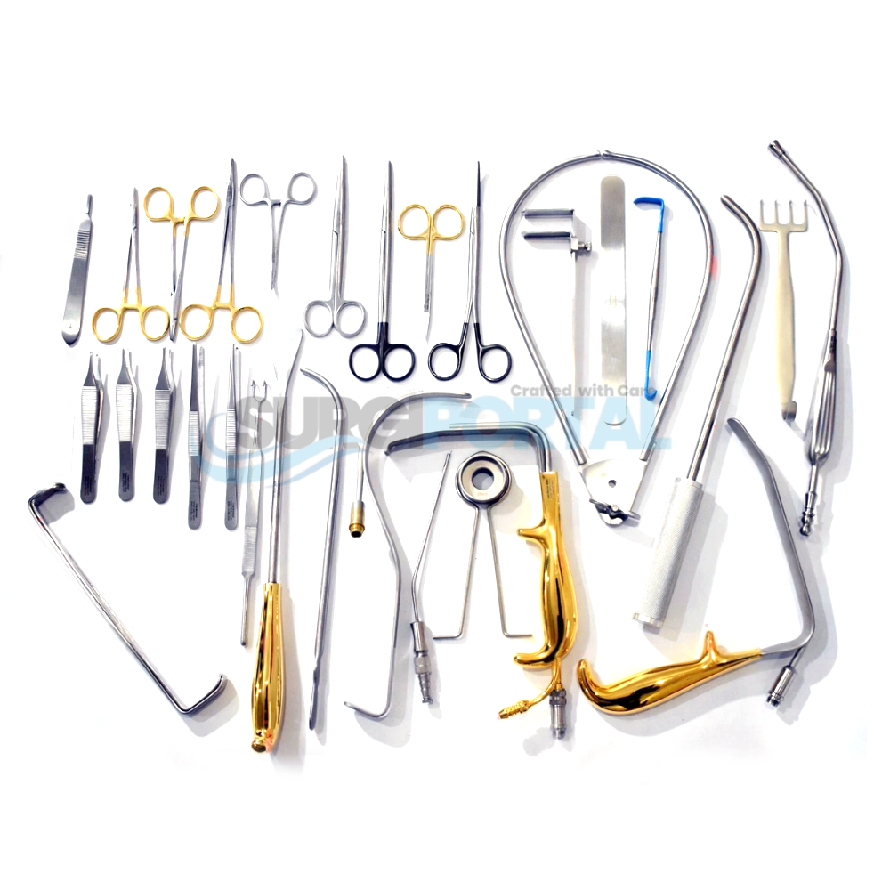 Breast Augmentation Complete Kit This 31-piece breast augmentation kit is crafted from premium German stainless steel, designed for precision and durability in implant and reconstructive procedures. It includes meticulously finished scissors, forceps, needle holders, elevators, retractors, and scalpels—covering all surgical stages from incision and pocket formation to closure. The instruments are autoclavable, reusable, and optimized for both inframammary and periareolar approaches. Each piece has been polished to minimize tissue trauma and maximize handling control during intricate procedures.