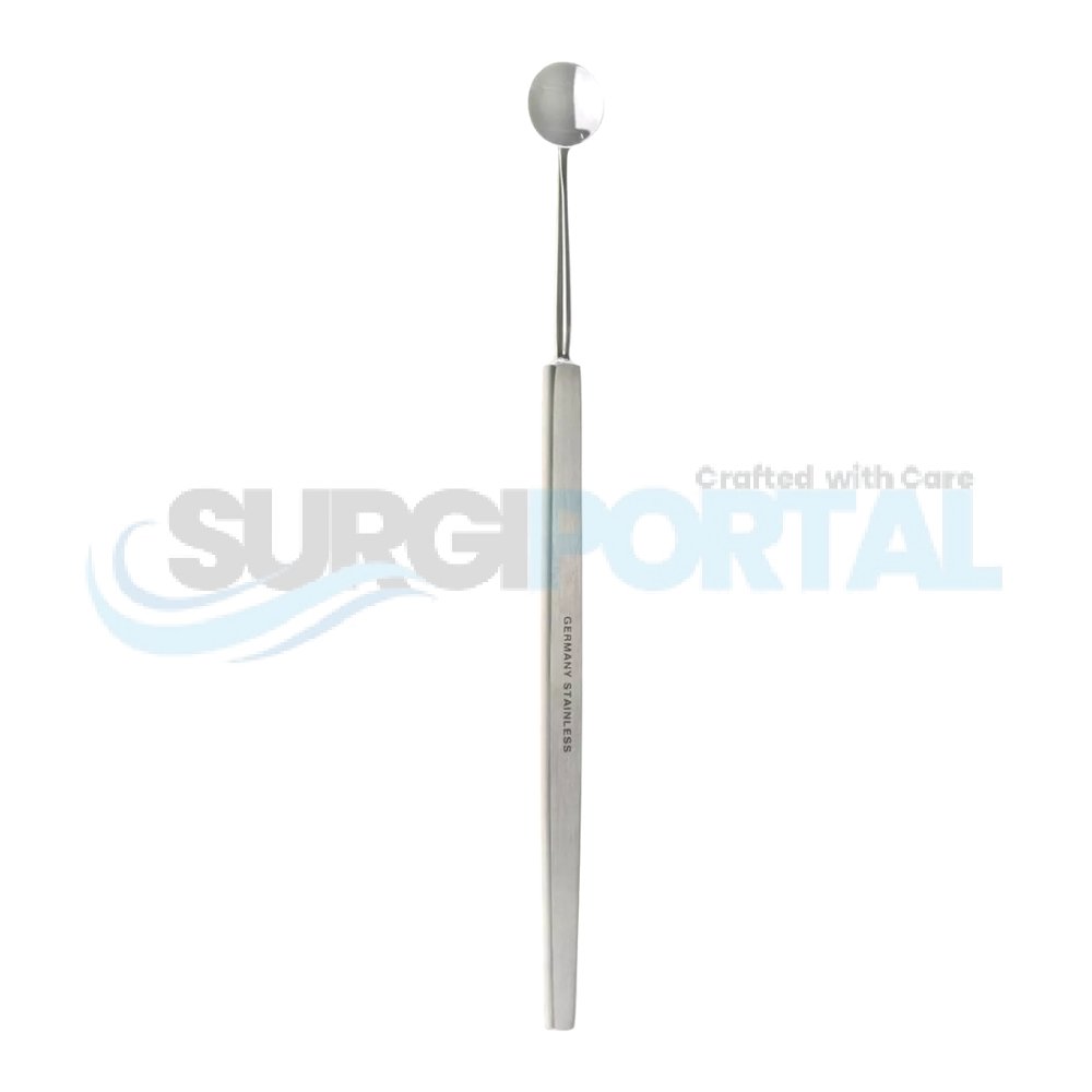 Bunge Evisceration Spoon – Large is a specialized ophthalmic instrument designed for use in eye evisceration procedures. Made from surgical-grade stainless steel, it features a smooth, rounded spoon-shaped blade that facilitates the removal of ocular contents with minimal trauma. The large size is suitable for cases requiring broader coverage and efficient tissue handling. Its ergonomic design ensures optimal control for the surgeon, while the polished finish guarantees ease of cleaning and sterilization. This instrument is a reliable choice for ophthalmic surgeons worldwide.