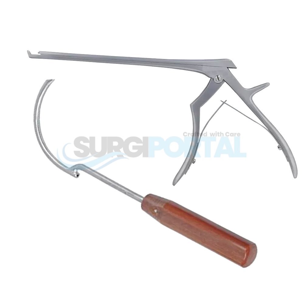 The Codman Lumber Kerrison Rongeurs 12 With Chiels & Wire passer Surgical Orthopedic is a 12-piece orthopedic surgical kit designed for spinal decompression and lumbar procedures. Crafted from premium surgical stainless steel, each instrument provides durability, precision, and corrosion resistance. The set includes rongeurs, chiels, and a wire passer, allowing surgeons to remove bone and soft tissue efficiently while maintaining patient safety. Ergonomic handles and finely tuned mechanisms enhance control and reduce hand fatigue during delicate spinal procedures.