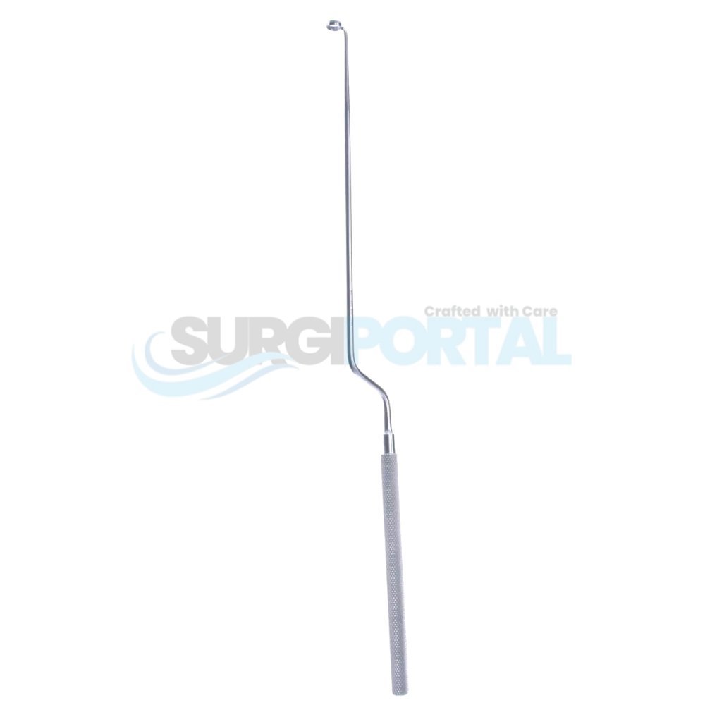 The 5 mm Curette with a 90° leftward angulation is a purpose-built instrument designed to provide precise lateral access in surgical fields where straight or upward-facing curettes fall short. Its left-angled orientation and steep 90° bend allow the surgeon to approach tissue from an optimal side angle, making it especially useful in navigating around bony contours, vascular structures, or within curved anatomical recesses. The 5 mm head allows for aggressive tissue removal while preserving accuracy and control.