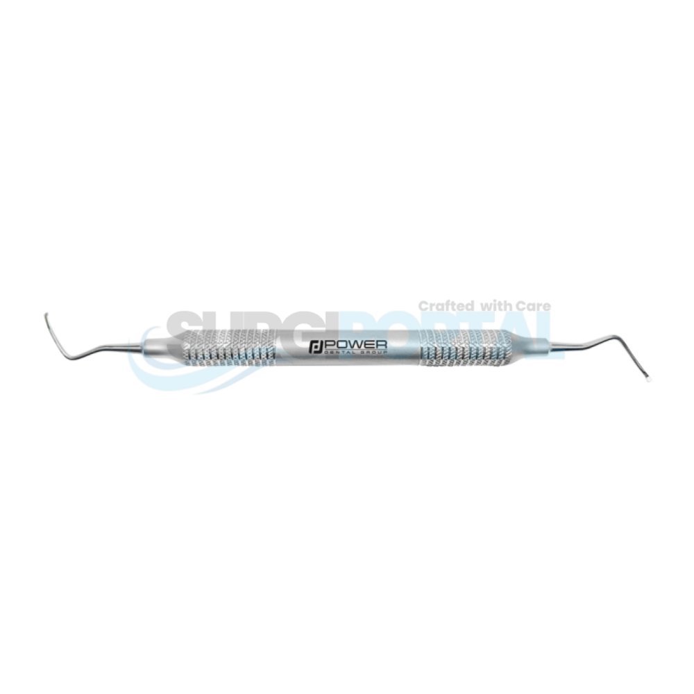 Excavator 35L 6EZ Handle with the ergonomic 6EZ handle is an advanced version of the classic long spoon excavator. Designed with wide, elongated spoon tips, it enables bulk removal of softened dentin from larger and deeper cavities with fewer strokes. The addition of the 6EZ handle takes operator comfort to the next level: its lightweight design, textured grip, and anti-slip surface reduce hand fatigue during prolonged procedures while enhancing tactile sensitivity for better control. Built from surgical-grade stainless steel, the working tips remain sharp even after repeated sterilization cycles. The double-ended design allows seamless operation without frequent instrument changes, ensuring efficiency in restorative care.