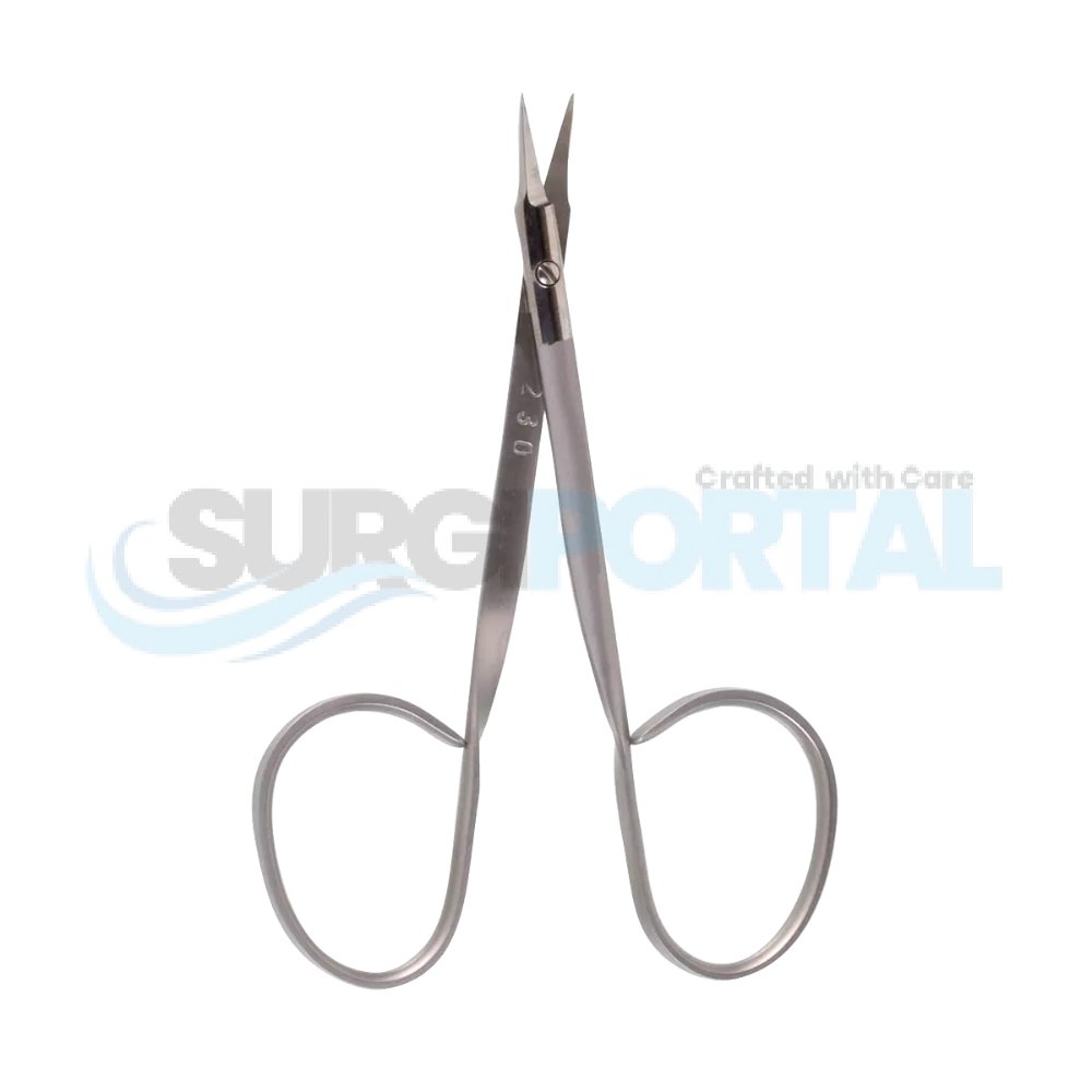A robust and precise instrument, combining the accuracy of pointed tips with the efficiency of large blades for delicate surgical procedures.