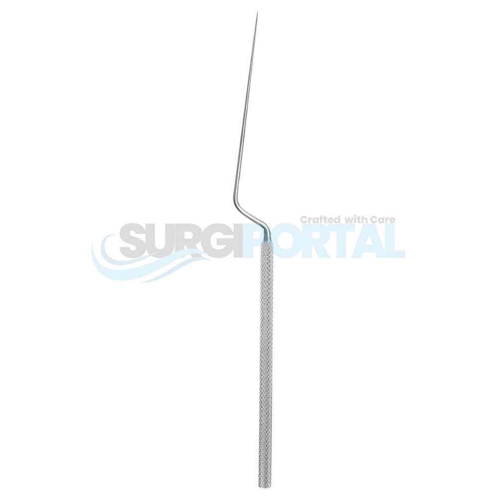 Needle Bayonet Fine, 6 1/2″ The 6 1/2″ Needle Bayonet Fine is a lightweight, precision needle designed for delicate otologic and microsurgical tasks. Its fine tip and bayonet handle design provide surgeons with an unobstructed line of sight, enhancing visibility within narrow and deep surgical cavities. This makes it particularly effective in stapedectomy and ossicular reconstruction procedures.