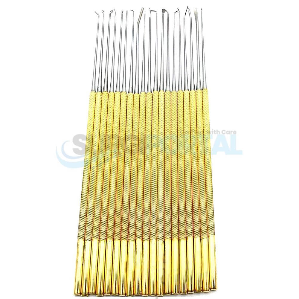 Rhoton Micro Dissector Set 20 Pieces with Gold Neurosurgery Surgical Instruments