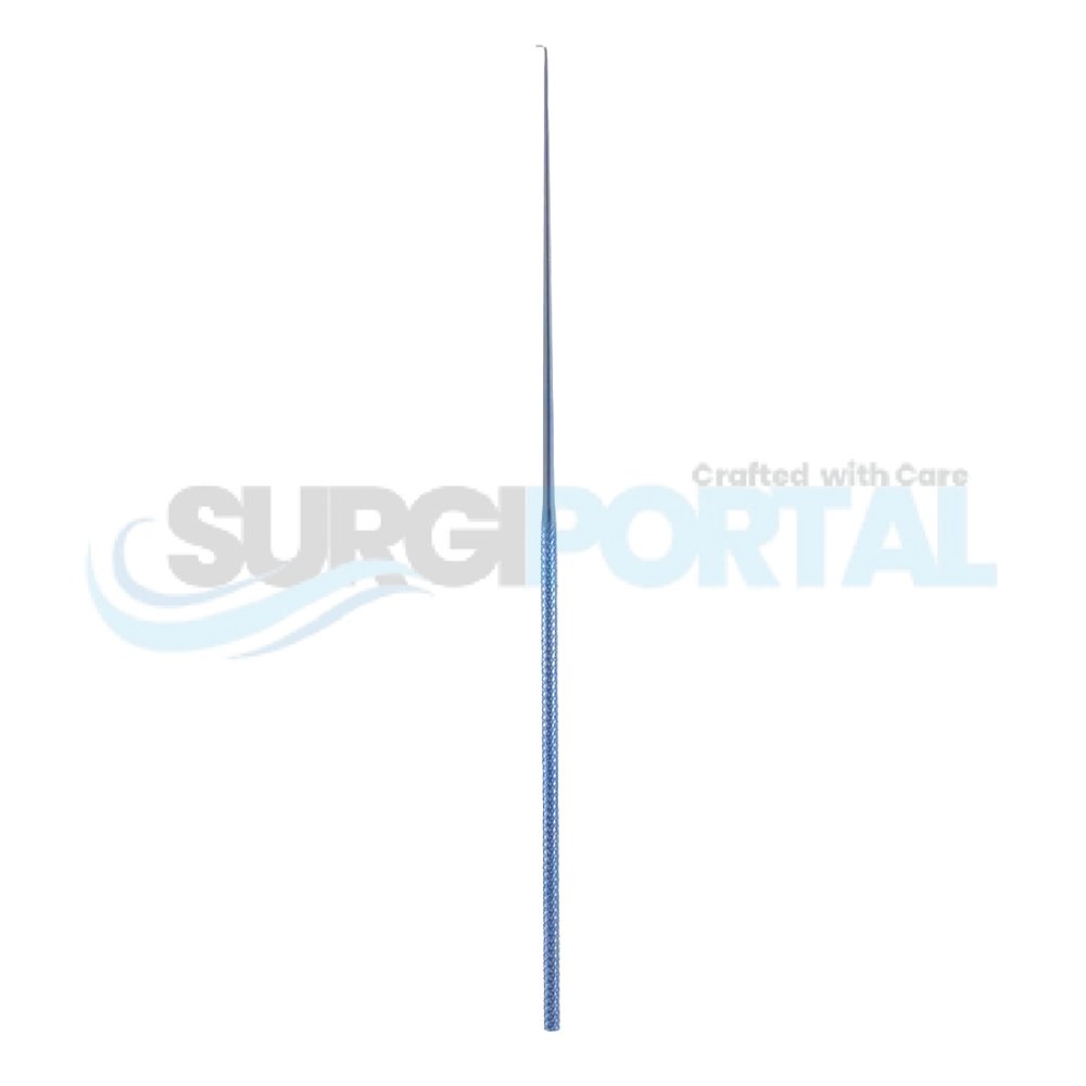 Rhoton Right Angle Hook Titanium Blunt tip is crafted for safe dissection and tissue handling in neurosurgery. Titanium’s lightweight and non-magnetic properties offer comfort and precision during extended procedures.