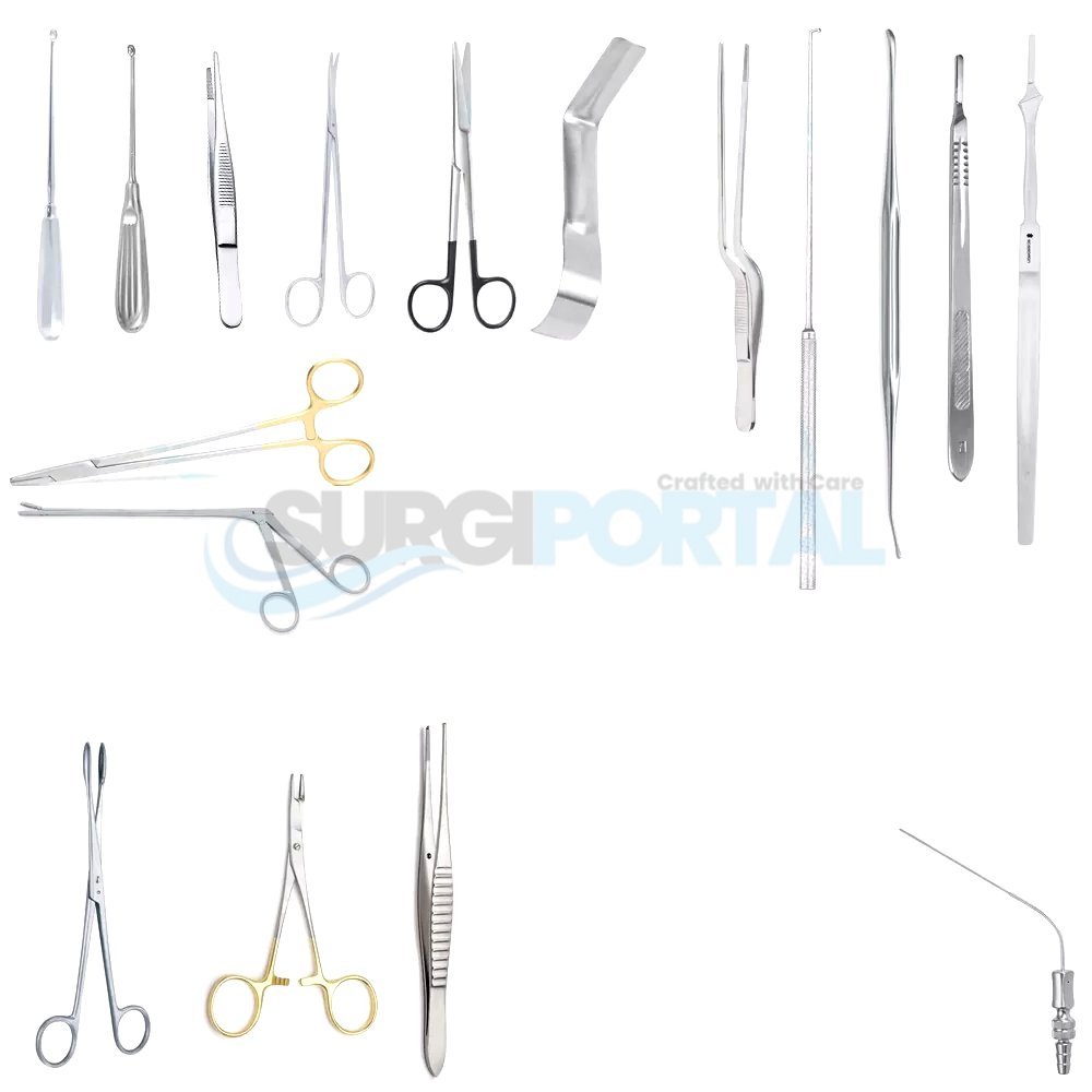 Each instrument is manufactured from surgical-grade stainless steel, polished to reduce friction and facilitate sterilization. The set incorporates a variety of rongeurs, curettes, elevators, retractors, and cutting tools, enabling surgeons to navigate the intricate anatomy of the spine with enhanced precision and safety.