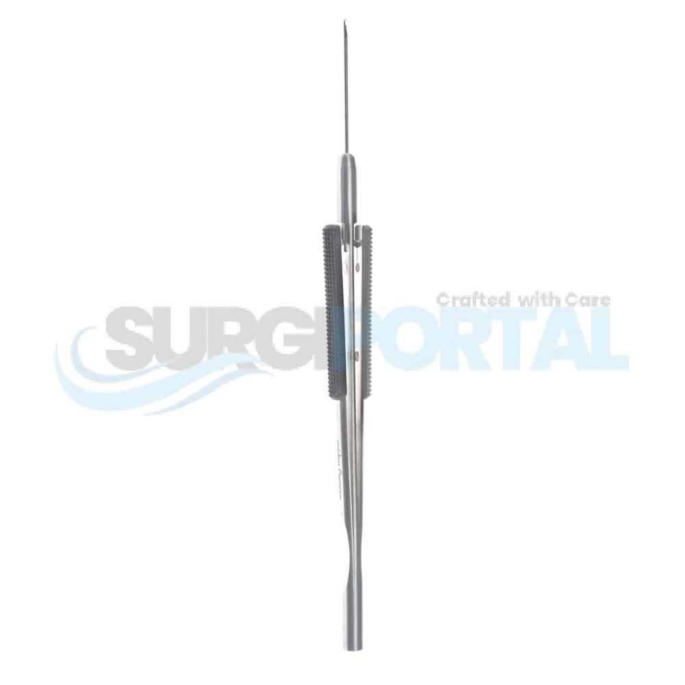 A highly specialized instrument for precise cutting and dissection in vitreoretinal procedures.